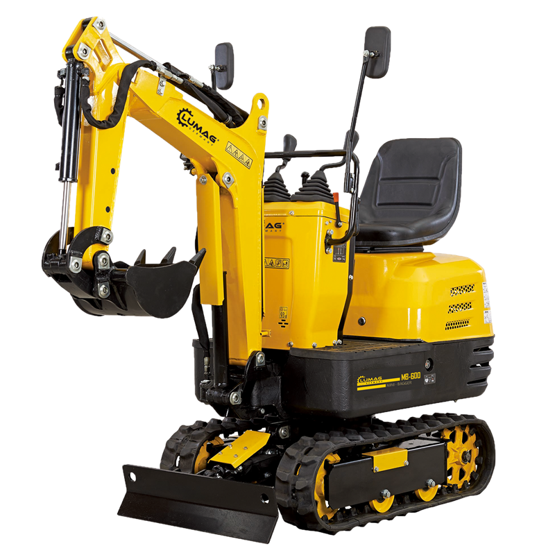 Minibagger Lumag MB600 inkl. Zubehör Palettengabel, Rechen, Haltekralle, Greifer, Baggerschaufel.